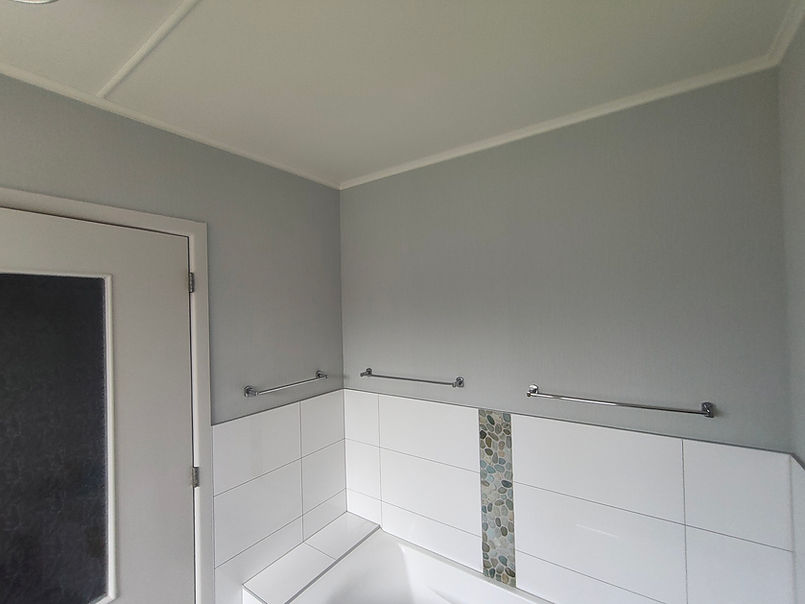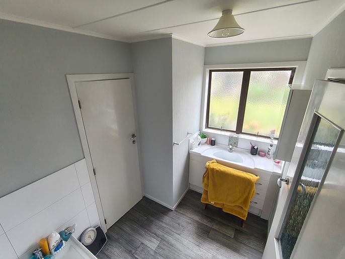 -Resene Habitat paper hung in shower room of Te Puke rural home